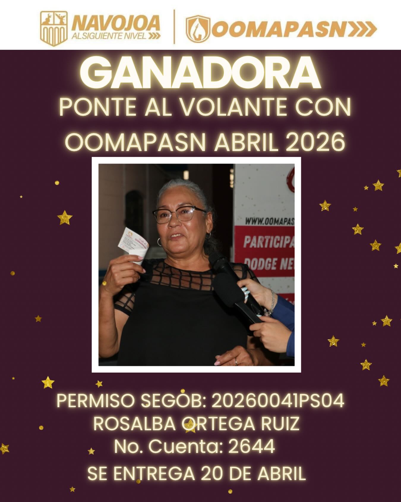 Nos llena de alegría anunciar que la afortunada ganadora del Dodge Attitude 2026, como parte de la campaña “Ponte al volante con OOMAPASN” Abril 2026, es: